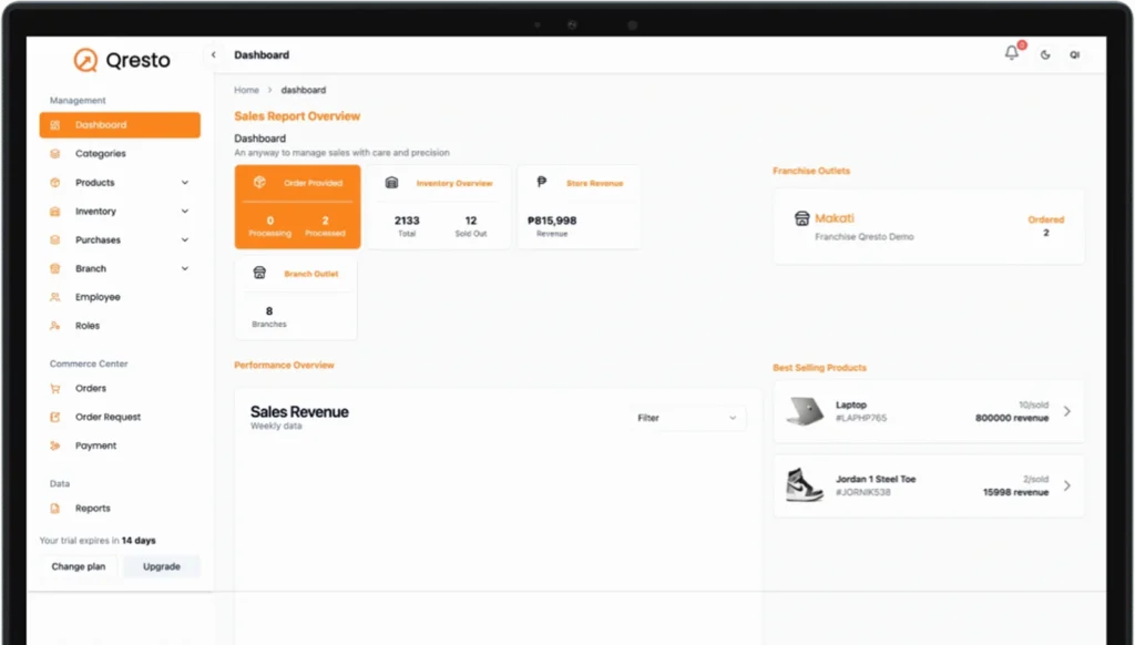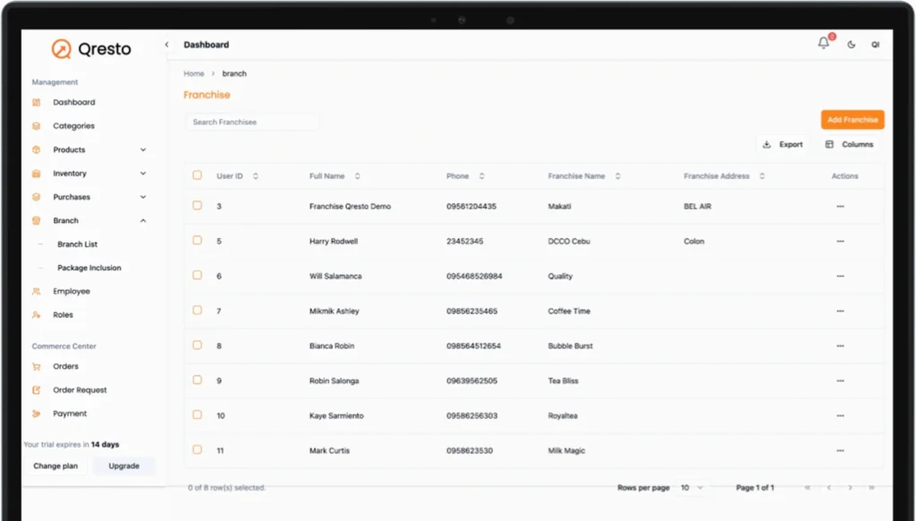 Qresto offers centralized control for managing inventory, orders, and performance across locations.